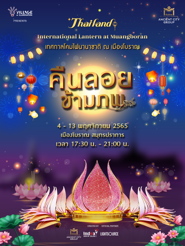 อีเวนต์สุดตระการตาที่มองไปทางไหนก็ชวนให้เราว้าววว เสมือนว่ากำลังอยู่ในฉากละครพีเรียดแต่ทุกมุมเพิ่มความสวยด้วยงานแสงสี และชวนให้กดชัตเตอร์รัว ๆ ที่นี่คือ International Lantern & Food Festival เทศกาลโคมไฟและอาหารนานาชาติที่กำลังจะจัดขึ้นที่ เมืองโบราณ สมุทรปราการ โดยทีม Village of illumination ที่เสกบริเวณด้านในของเมืองโบราณให้กลายเป็นงานแสงสี งานโชว์ไฟที่ยิ่งใหญ่ส่งท้ายปี